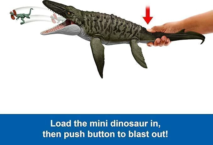 O Dinossauro Grande Jurassic World Mosasaurus Mattel é um gigantesco réptil marinho com 60 cm de comprimento com um mecanismo de mordida poderoso e uma aparência autêntica de encher os olhos, sendo uma ótima peça de decoração para o quarto. E seus 5 pontos articuláveis e seus mecanismos de ataque tornam a brincadeira ainda mais divertida, permitindo deixa-lo em diversas posições diferentes enquanto batalha com seus adversários durante suas várias aventuras pelo oceano. Dessa forma, uma simples brincadeira se torna uma verdadeira aventura pré-histórica!